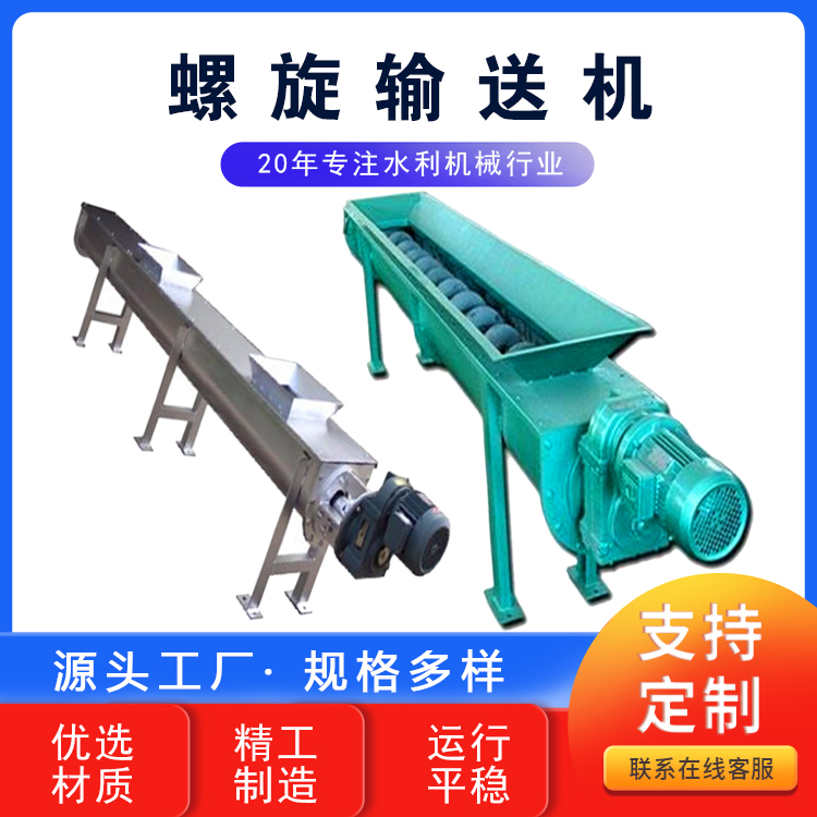 螺旋輸送機在輸送形式上分為有軸螺旋輸送機和無軸螺旋輸送機兩種,在外型上分為U型螺旋輸送機和管式螺旋輸送機。有軸螺旋輸送機適用于無粘性的干粉物料和小顆粒物料.(例如:水泥、粉煤灰、石灰、糧等)而無軸螺旋輸送機適合輸送機由粘性的和易纏繞的物料。(例如:污泥、生物質、垃圾等)螺旋輸送機的工作原理是旋轉的螺旋葉片將物料推移而進行螺旋輸送機輸送,使物料不與螺旋輸送機葉片一起旋轉的力是物料自身重量和螺旋輸送機機殼對物料的摩擦阻力。螺旋輸送機旋轉軸上焊的螺旋葉片,葉片的面型根據輸送物料的不同有實體面型、帶式面型、葉片面型等型式。