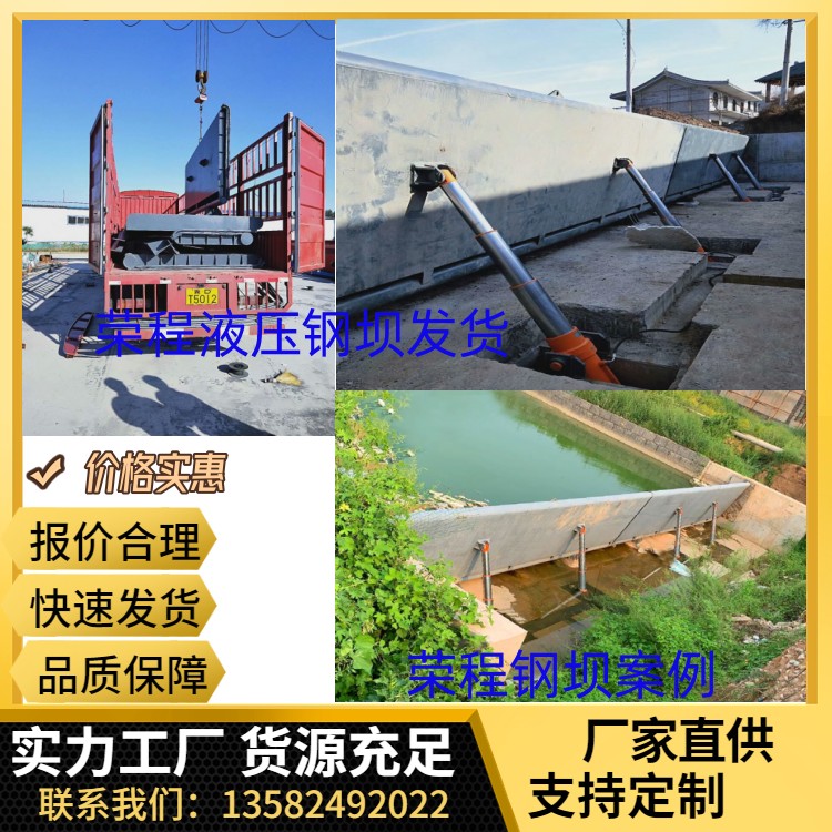 此功能使得部分有特殊行洪要求的河道在面臨大暴雨等極端惡劣氣候條件下的安全行洪意義重大,安全可控度高,當洪水位超過壩頂一定高度(可事先設定),將會引起泵站開始工作,使得液壓活動壩壩面下降,確保行洪安全;液壓壩可根據河道蓄水能力,實現任意調節攔水高度,同時還可實現單扇或多個壩扇任意組合或同步調節,減少水流對下游的沖刷。