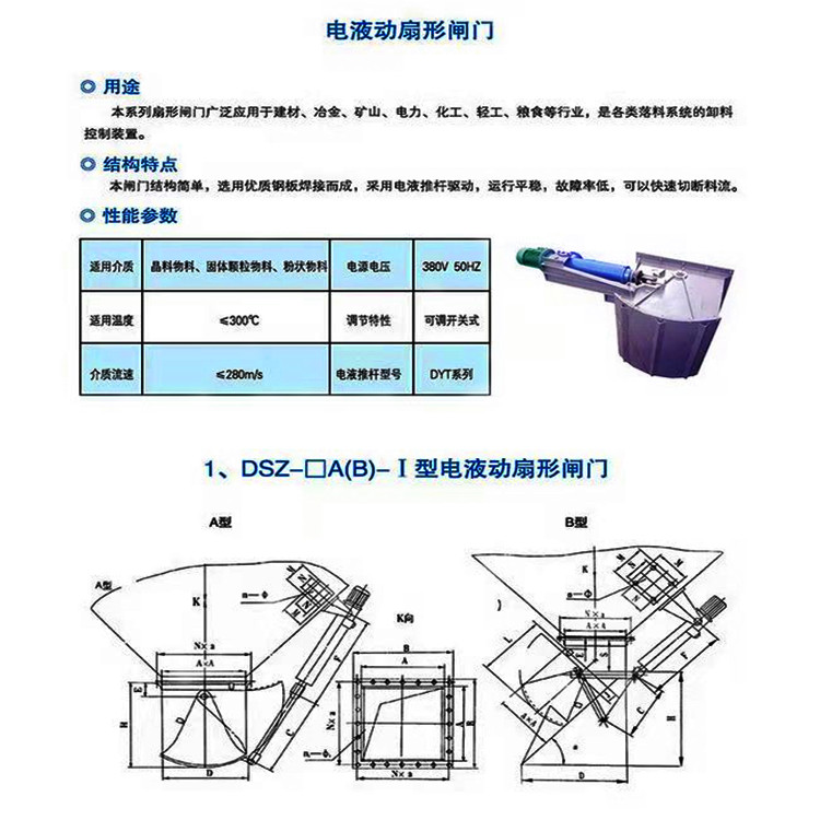 扇形閘門廣泛應用于建材、冶金、礦山、化工、電力等行業,是各類落料系統的控制裝置。結構特點: 結構簡單,由優質鋼板焊接而成,具有開啟靈活、無卡阻等特點。